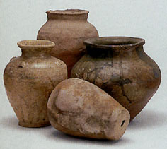 ヒクマ各所から出土した中世の蔵骨器(東小学校校庭遺跡)